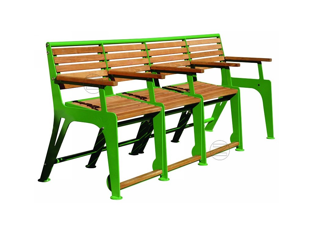 Banca cu 3 locuri, cu spatar si 1 loc pentru scaun cu rotile.