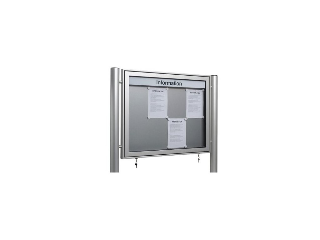 Panou cu 1 usa, cu colturi ascutite sau rotunjite. Usa rabatibila si arc cu gaz de presiune. Constructie foarte stabila cu profile de aluminiu. Inchizatoare cu cilindru si aerisire permanenta. Peretele interior al panoului este aderent pentru magneti, optional cu banda pentru text, respectiv stativ de teava rotunda (Ø 80 mm) sau patrata (80x40 mm).