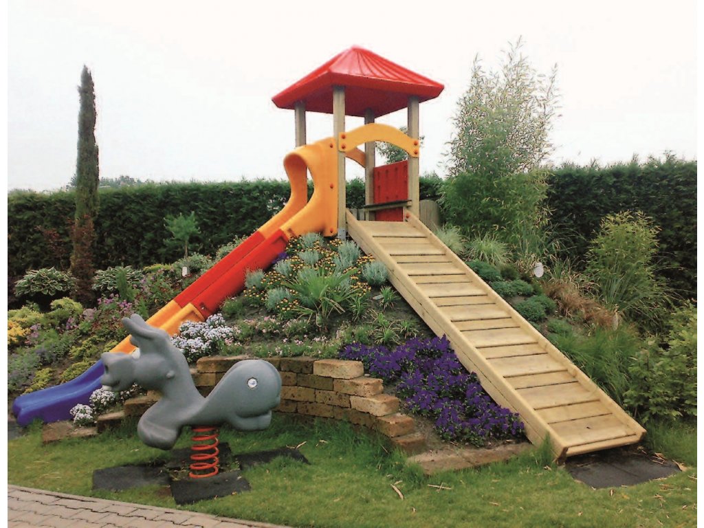 Turn cu stalpi din lemn, potrivit pentru copii de toate varstele.