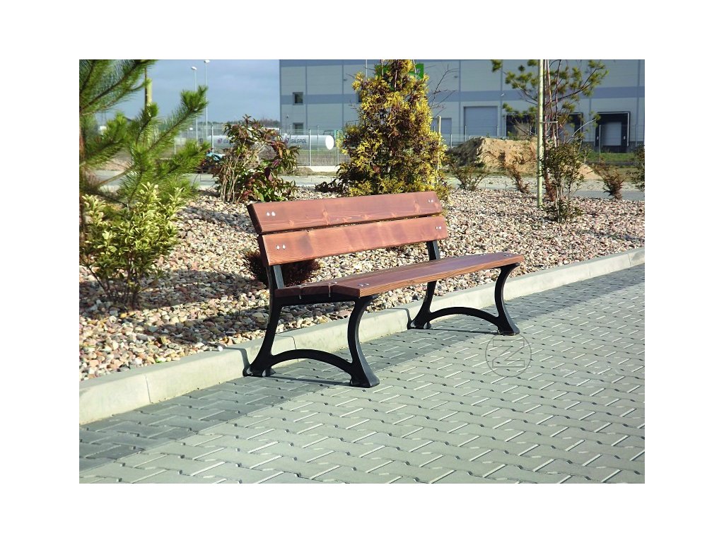 Banca cu schelet din fonta. Suprafata de sedere si spatar cu sipci de lemn.