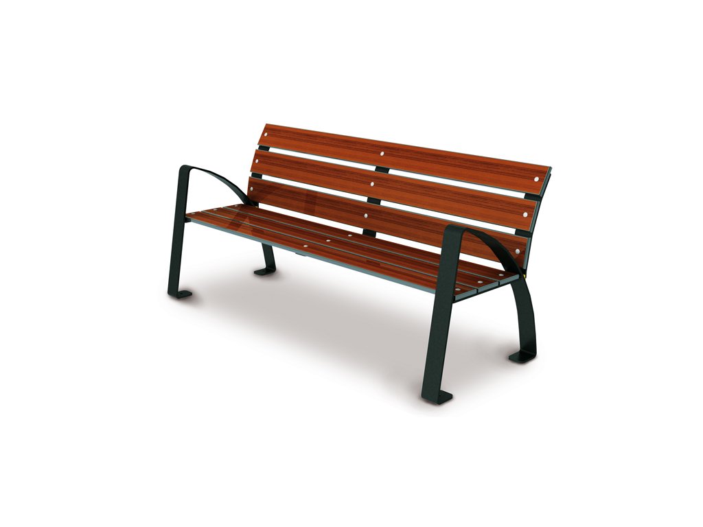 Bancă parc din oțel zincat la cald si vopsit in camp electrostatic in culori RAL, sezutul si spatarul din lamele Compact cu grosime de 14mm.