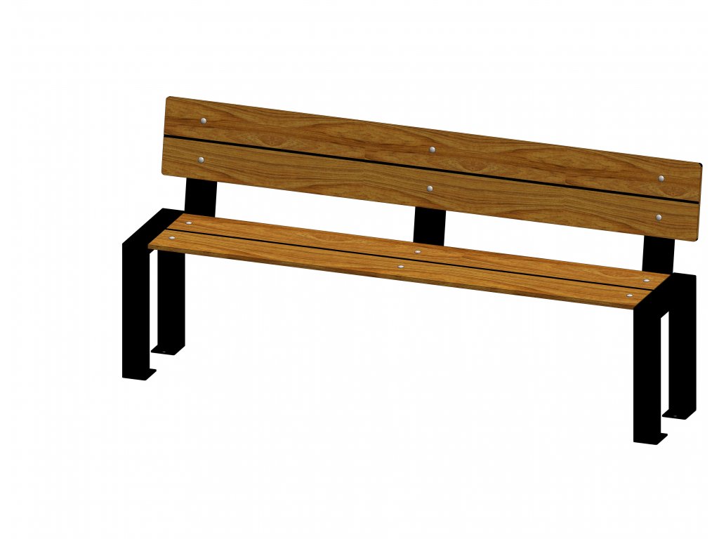 Bancă parc din oțel zincat la cald, la cerere vopsit in camp electrostatic in culorile RAL 6005 verde inchis sau RAL 9005 negru, sezutul si spatarul din lamele Compact cu grosime de 14mm in culorile tec sau havanna.