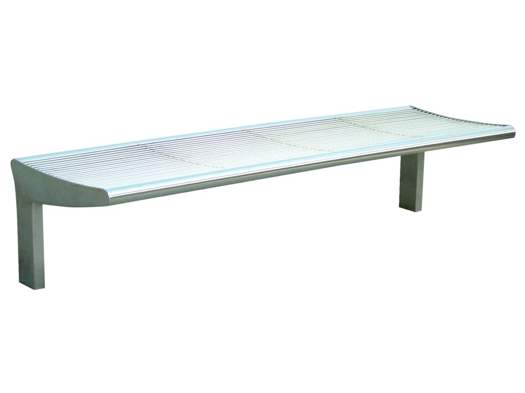 Banca din otel aliat. Suprafata de sezut din otel rotund Ø10 mm, marginea anterioara a suprafetei de sezut din teava Ø48,3 mm. Partile laterale sunt taiate cu laser si pot fi prinse intre ele prin insurubare, respectiv pot fi aplicate una langa cealaltă fara spatiu. Picioarele sunt din teava dreptunghiulara 100 x 40 x 2 mm.
