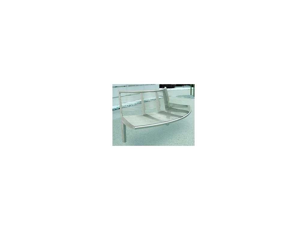 Banca din otel aliat. Suprafata de sezut si spatarul din otel rotund Ø10 mm, marginea anterioara a suprafetei de sezut si marginea superioara a spatarului din teava Ø48,3 mm. Partile laterale sunt taiate cu laser si pot fi prinse intre ele prin insurubare, respectiv pot fi aplicate una langa cealalta fara spaţiu. Picioarele sunt din teava dreptunghiulara 100 x 40 x 2 mm.