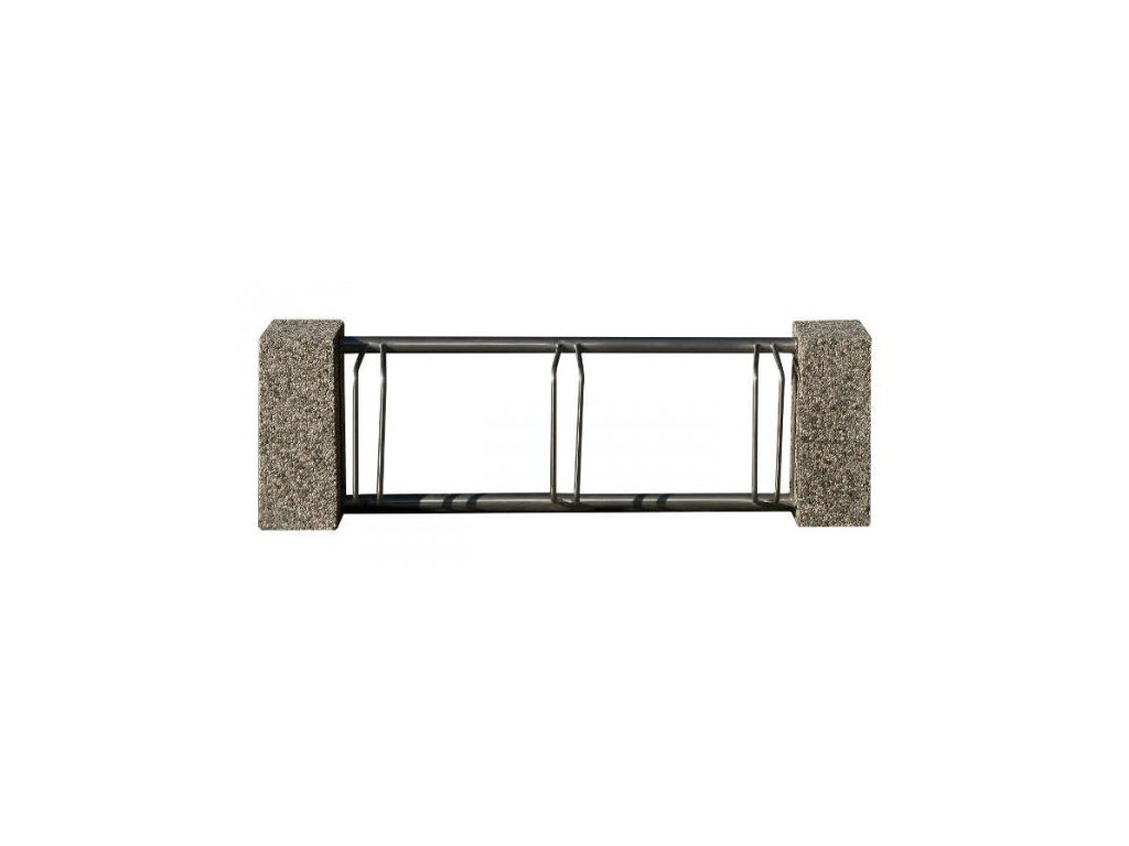 Rastel de biciclete cu suport din beton armat si locasuri pentru biciclete din inox.