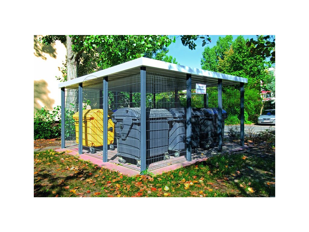 Acoperis cu culisa pe 1 parte sau pe 2 parti, rama acoperisului autoportanta, cu tabla trapezoidala in partea inferioara si vospita suplimentar gri-alb RAL 9002, inaltimea ramei acoperisului 140 mm.