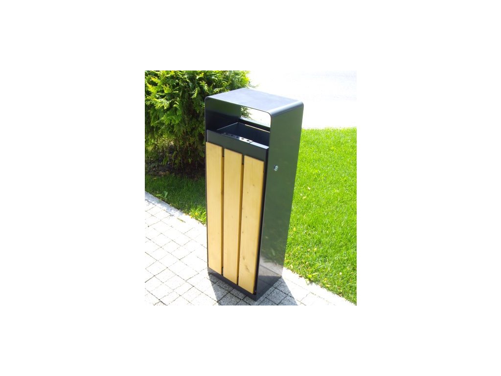 Cos stradal, cu structura din otel galvanizat de 4 mm, acoperit cu lamele din lemn. Recipient interior din otel galvanizat, prevazut cu scrumiera. Lemn de esenta tare tratat dupa gama de culori Zobel. Cosul este prevazut cu capac. Recipientul interior din tabla de otel galvanizata care se poate scoate pentru golire.