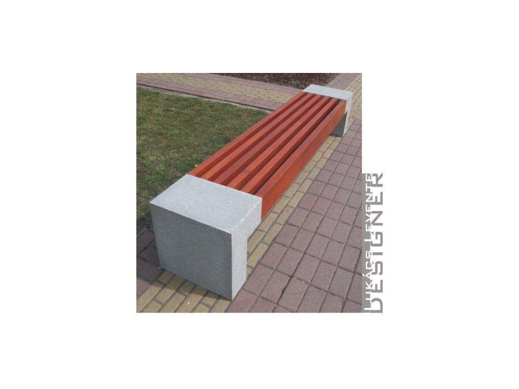 Banca cu laterale din piatra de beton artificiala, gri-deschis, cu sipci de lemn.