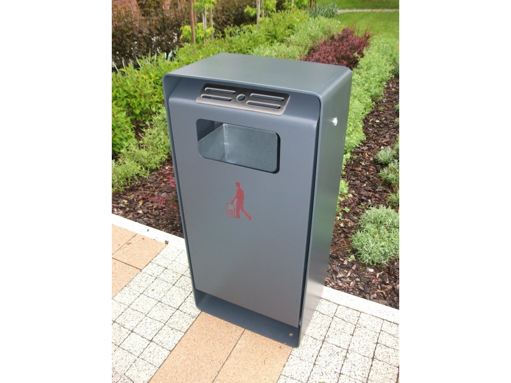 Cos stradal cu tabla de otel de 4 mm galvanizat. Cosul este prevazut cu scrumiera si recipient interior din tabla galvanizata. Cosul se deschide cu cheie speciala pentru golirea recipientului interior.