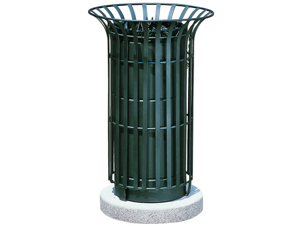 Cosul este construit dintr-o structura cilindrica cu elemente verticale din platbanda de otel, unite in partea superioara cu un inel din profil de otel de Ø10 mm, prin sudare. La alegere, cu scrumiera sau capac de protectie. Livrare inclusiv recipient interior si inel pentru sacul de gunoi.