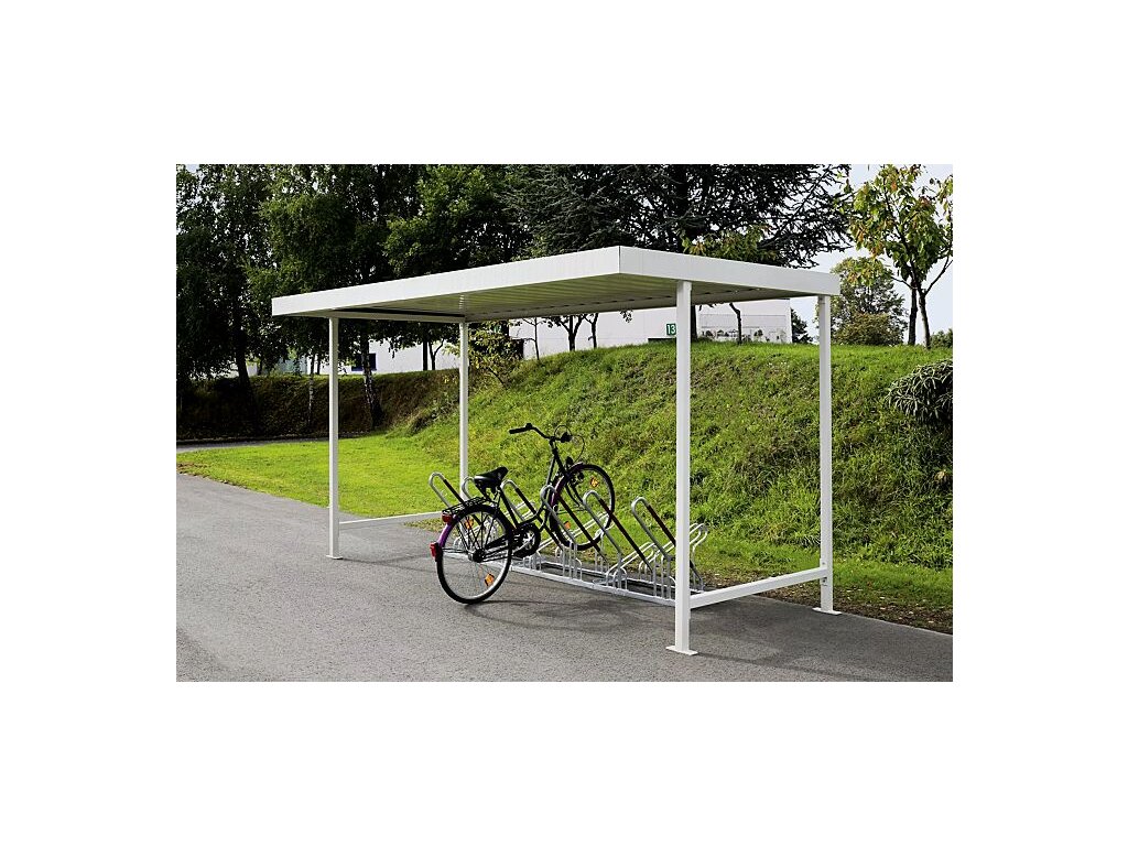 Constructie de otel zincat la cald. Sustineri din teava dreptunghiulara 100/50 mm. Rama acoperisului din profil de cant autoportant (inaltime 140 mm) cu tabla trapezoidala in partea inferioara.