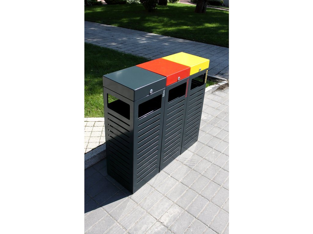 Cere ofertăCos stradal selectiv 3x 50 l, fara scrumiera, din tabla de otel de 1,5 mm zincat termic, cu recipient interior din tabla galvanizata.